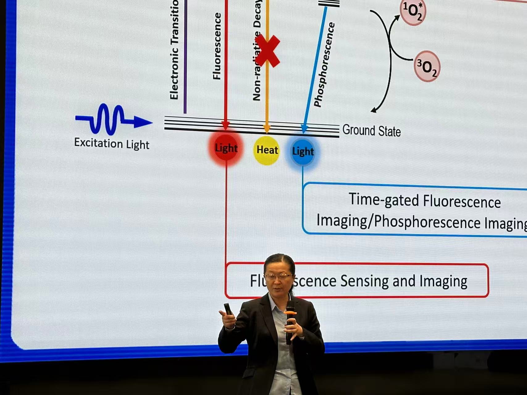 在本讲座中,刘斌教授作了题为“lmpurity Conundrum in Organic Room-temperature Phosphorescence”的报告。刘斌教授从荧光机理出发,介绍了多种荧光过程,并通过生物活体光学成像,展现了磷光材料所具有的抗生物自体荧光优势。他们发现实验室合成的高纯度咔唑相对于商业化咔唑,室温超长磷光几乎消失,表征发现这是由于商业化的产品中含有咔唑异构体杂质。受此现象启发,他们考虑将异构体等“掺杂”到结构有序的有机分子晶体中,获得了波长、发光强度可调的磷光性质。之后,刘斌教授介绍了磷光材料的潜在应用场景,包括力致长余辉发光、信息加密和柔性材料加工等,特别地指出磷光材料也可用于制造光波导纤维。