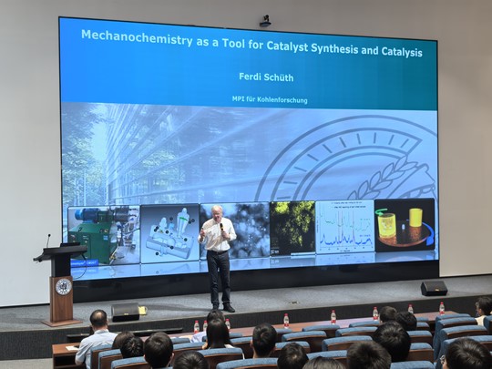 在互动交流环节,Ferdi Schüth教授就室温球磨合成的实现路径、颗粒间相互作用力的调控机制、纳米颗粒尺寸的精准控制等问题进行了专业解答。