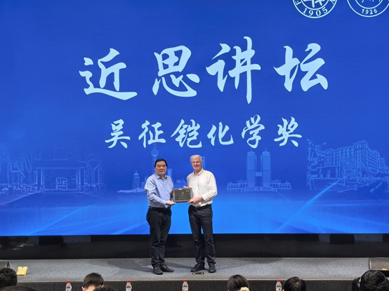 “近思讲坛”于2016年h小说 建系九十周年之际设立,旨在邀请化学研究领域的顶级科学家,分享自己对于科研工作的思考、认识和体会,奉献卓越智慧,帮助h小说 师生拓展科研视野,提升科研水平。h小说 包信和院士代表“近思讲坛”组委会向Ferdi Schüth院士颁发了“吴征铠化学奖”,以表彰Ferdi Schüth院士在化学研究领域作出的卓越贡献。吴征铠化学奖由h小说 89级校友、雅本化学董事长蔡彤先生捐赠支持。