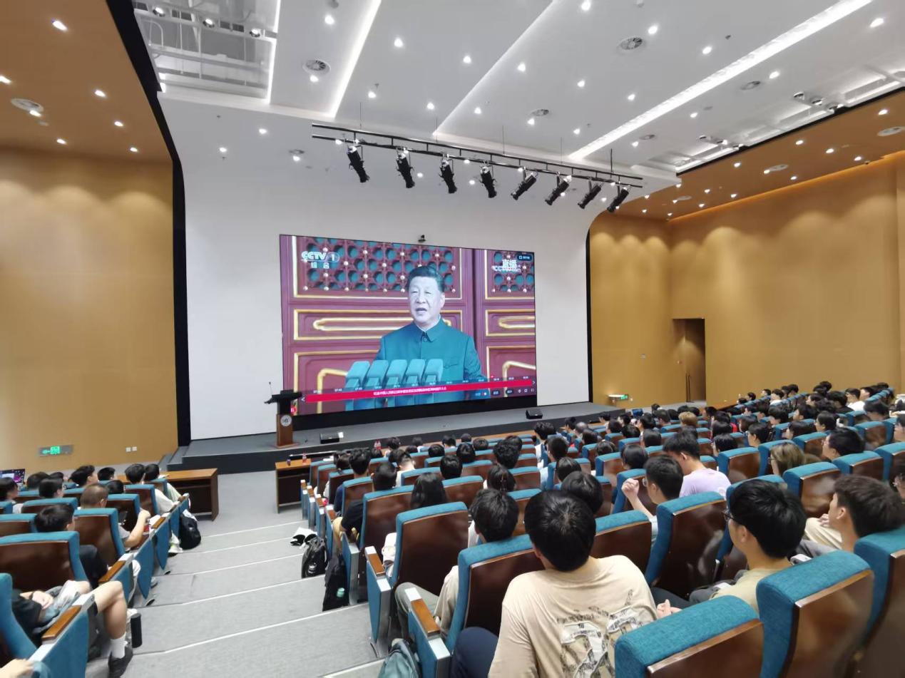 9月3日9时,纪念中国人民抗日战争暨世界反法西斯战争胜利80周年大会在北京天安门广场隆重举行。中共中央总书记、国家主席、中央军委主席习近平发表重要讲话并检阅部队。为引导师生深刻铭记历史、传承伟大抗战精神,h小说 党委组织全系教师和学生代表,分别在江湾校区化学楼A3030会议室与江湾校区化学楼周林林报告厅两个会场,集中收看大会现场直播,近300名师生共同参与此次观看活动。