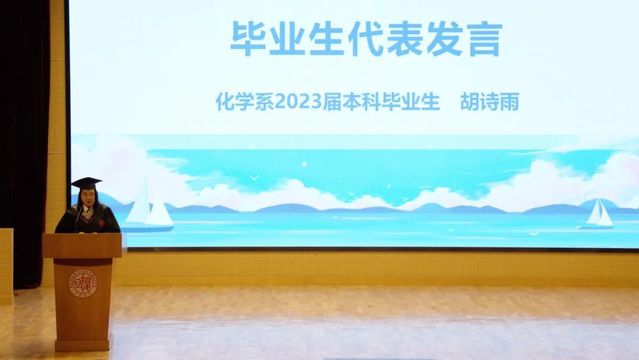 本科毕业生代表胡诗雨、硕士毕业生代表邱天泽、博士毕业生代表郭书廷先后发言,回顾了在h小说 的所见所学所思所想以及经历的种种过往:是卷绩点卷实践卷科创的“卷王们”、是既有毫克水准细腻还有千克级别担当的“能力者们”、是会虔诚祈祷求求实验顺利的“信男信女们”,是追求真理探索突破的“朝圣者们”,还是面对困难挫折永不言败的“不倒翁们”……天下无不散之筵席,望各位毕业生们能融入时代,在未来的大道继续勇往直前,大展复旦化学人风采。