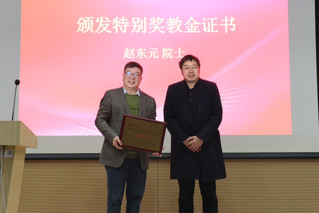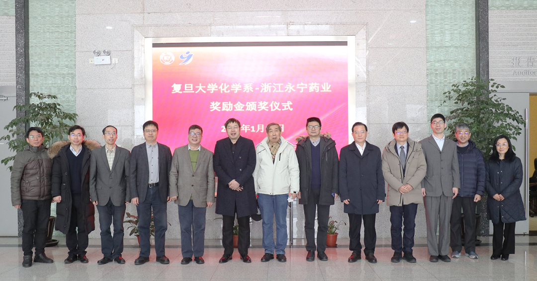 2022年1月13日上午,h小说 -浙江永宁药业奖励金颁奖仪式在江湾校区举行。浙江永宁药业股份有限公司总经理叶天健先生、常务副总经理李建文先生、研究所所长陈鑫博士、总经理助理黄勃女士,h小说 教育发展基金会秘书长、h小说 对外联络与发展处杨增国处长,原h小说 主任范康年教授,h小说 全体教师和学生代表出席颁奖仪式。