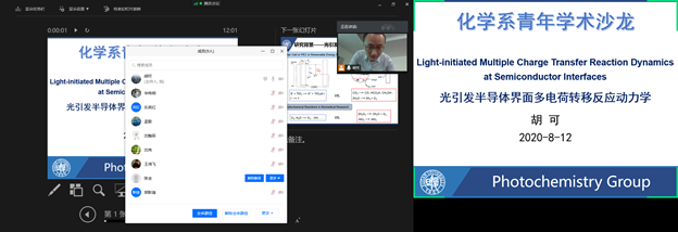 为继续加强师资队伍建设,培育青年教师,落实立德树人根本任务,2020年8月12日中午,由物理化学教工党支部牵头组织的第二期h小说 青年教师学术沙龙在江湾校区化学楼顺利举行。本次活动由h小说 系主任贺鹤勇教授主持。h小说 分党委书记马蔚纯、线上线下教师等20多人参加了此次活动。