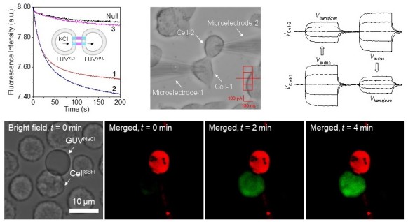 随着基因技术和合成生物学技术的快速发展,人工合成细胞已成为现实,为人工合成组织,甚至人工合成生命提供了可能。在生物体内,细胞不仅可以与其周围环境进行细胞内外的物质和信号输送,而且还可以与相邻细胞进行细胞间的物质和信号传递,从而维持同一组织内细胞环境的稳定及功能的一致性。由于正常细胞间存在着4-20 nm的间隙,因此,物质和信号无法直接在相邻细胞间进行传递。经过长期的进化,生物体发展了一种被称为间隙连接通道 (Gap Junctional channel) 的蛋白,这类蛋白可以将相邻的细胞连接起来,形成跨细胞间隙的通道,从而介导细胞间物质和信号的传递。在体外,这类蛋白的规模化制备以及与细胞膜的整合还存在很大的挑战性,从而限制了它们在人工合成细胞方面的应用。