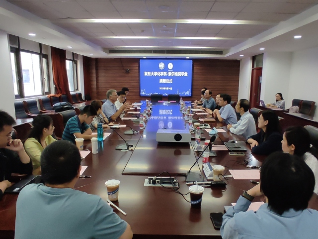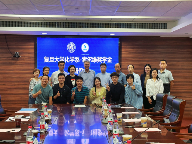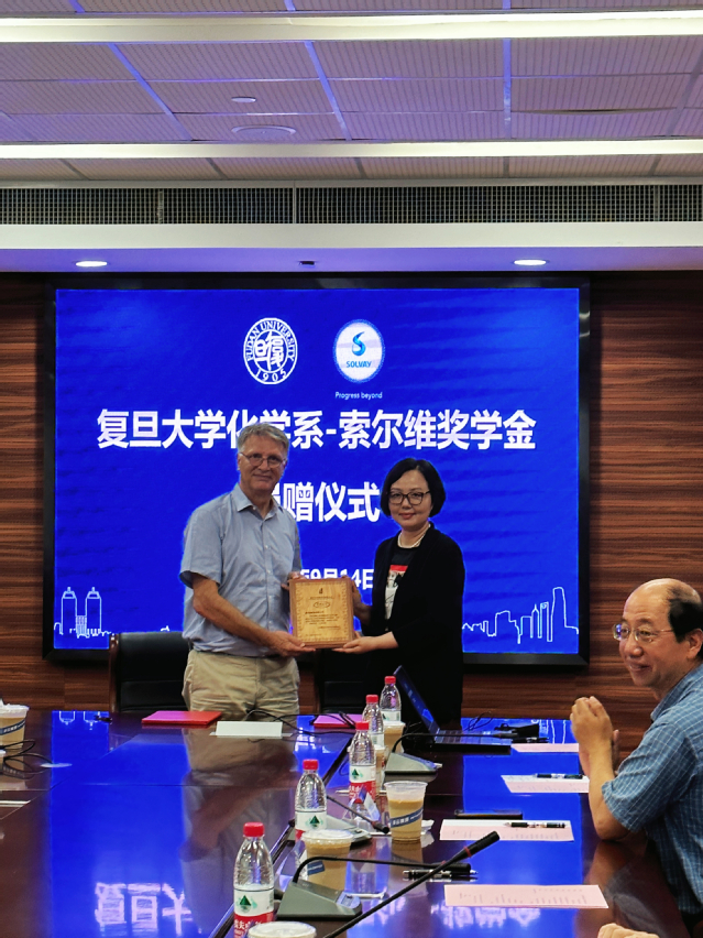 9月13日,h小说 索尔维奖学金捐赠仪式于江湾校区化学楼举行。索尔维集团研究与创新总监Pascal Metivier(梅德威),索尔维投资有限公司人事经理王梦醒,索尔维中国研发总监郝晔,索尔维投资有限公司研发外事经理董婕,h小说 对外联络与发展处副处长章晓野,h小说 主任周鸣飞,党委书记马蔚纯,h小说 教授、化学与材料学院党委书记徐华龙,h小说 党委副书记秦枫及首届获奖学生代表等参加了仪式。