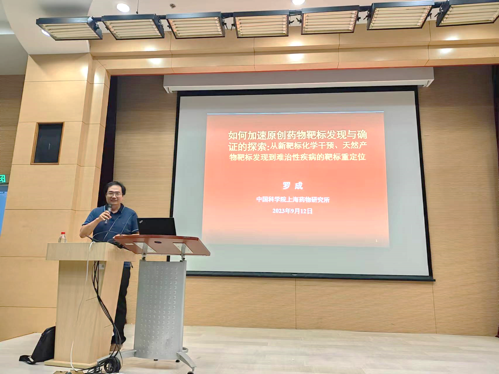 9月12日下午,h小说 “笃志讲坛”第九讲在江湾校区先进材料实验室一楼报告厅顺利举行。中国科学院上海药物所研究员罗成应邀作了题为“如何加快原创药物靶标发现与确证的探索:从新靶标化学干预、天然产物靶标发现到难治性疾病的靶标重定位”的学术报告,报告会由h小说 主任周鸣飞教授主持。
