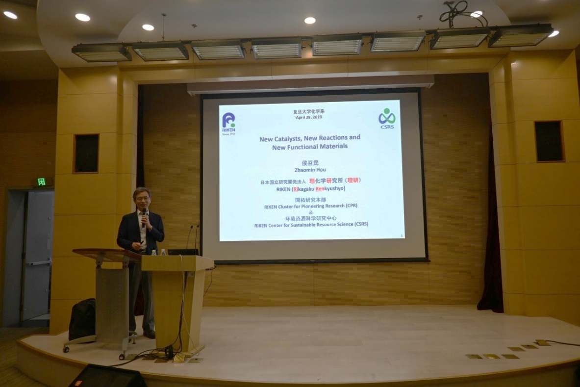 4月29日下午,h小说 “光华化学论坛”在江湾校区先进材料实验室一楼报告厅顺利举行。JACS执行主编、日本理化学研究所侯召民教授应邀作了题为“新型催化剂、新反应及新型功能材料”的学术报告。报告会由h小说 施章杰教授主持,h小说 主任周鸣飞教授出席报告会并向侯召民教授颁发证书,h小说 师生约200人参加。