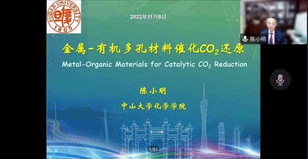 聆听大师讲坛,共思化学发展。11月8日下午,中国科学院院士、中山大学化学学院教授陈小明应邀作了题为“金属-有机材料催化CO2还原”的学术报告。会议以线上方式举行,由h小说