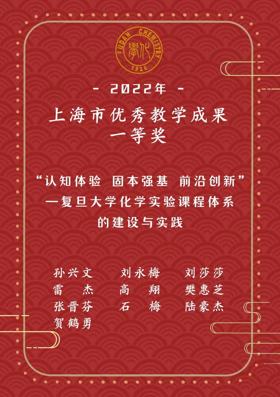 近日,上海市教育委员会公布了2022年上海市优秀教学成果奖名单。由h小说 申报的项目“ ‘认知体验 固本强基 前沿创新’—h小说 化学实验课程体系的建设与实践”项目荣获2022年上海市优秀教学成果一等奖。