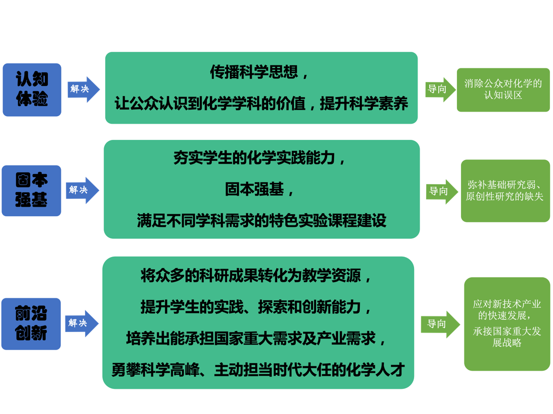 该实验课程体系三个层面对应着目前亟待解决的教学问题和导向。