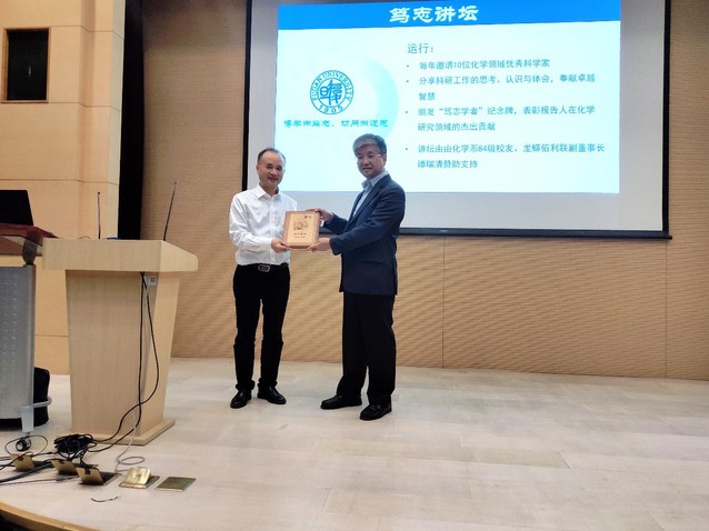 为了表彰张晓兵教授和王为教授在化学科研领域做出的杰出贡献,贺鹤勇教授代表“笃志讲坛”组委会向张晓兵教授和王为教授分别颁发了h小说 “笃志讲坛”奖牌,以此激励师生们分享科研工作的思考、认识与体会,奉献卓越智慧,加强科研的学术交流与合作,加快促进复旦化学学科的科研学术发展。h小说 “笃志讲坛”的举办得到了h小说 1984级系友、龙蟒佰利联副董事长谭瑞清先生的大力支持。