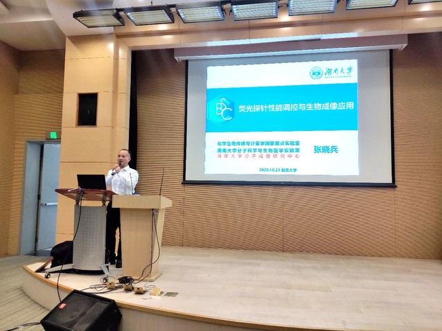 2020年10月23日下午14:00,湖南大学化学化工学院教授、国家杰出青年科学基金获得者、国家“万人计划”科技创新领军人才张晓兵教授和兰州大学化学化工学院教授、国家自然科学基金委杰出青年基金获得者、科技部中青年科技创新领军人才王为教授,应邀在江湾校区先进材料实验室一楼报告厅,分别作了题为“荧光探针性能调控与生物成像应用”和“共价有机框架材料:从共价组装、结构表征到功能应用”的精彩学术报告。报告会由h小说 系主任贺鹤勇教授主持,来自h小说 、高分子系、先进材料实验室等院系师生参加了此次报告会。