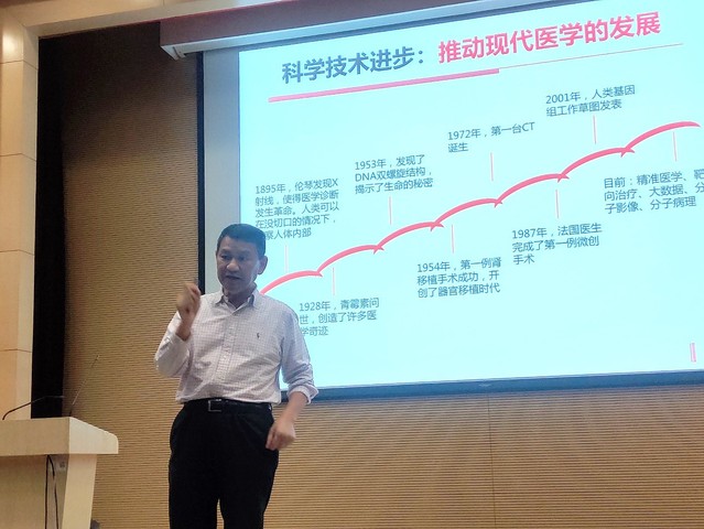 2020年10月22日晚上19:00,中国科学院院士、发展中国家科学院院士、欧洲科学院院士谭蔚泓教授应邀请在江湾校区先进材料实验室一楼报告厅作了题为“健康中国时代的分子科学”的学术报告。报告会由h小说 系主任贺鹤勇教授主持,来自h小说 、高分子系、先进材料实验室等院系一百多位师生参加了报告会,报告厅座无虚席。