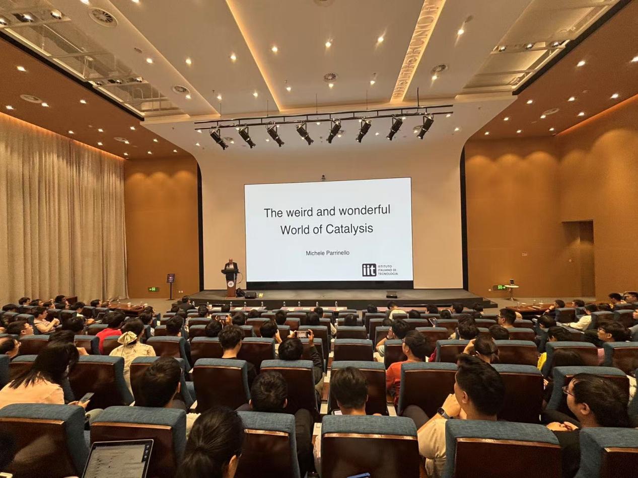 除了具体催化体系的研究成果,Michele Parrinello教授还介绍了复杂反应过程动态研究的新方法。他幽默风趣的讲述方式,将深奥的科学问题转化为生动有趣的探索故事,赢得了在场师生的阵阵掌声。