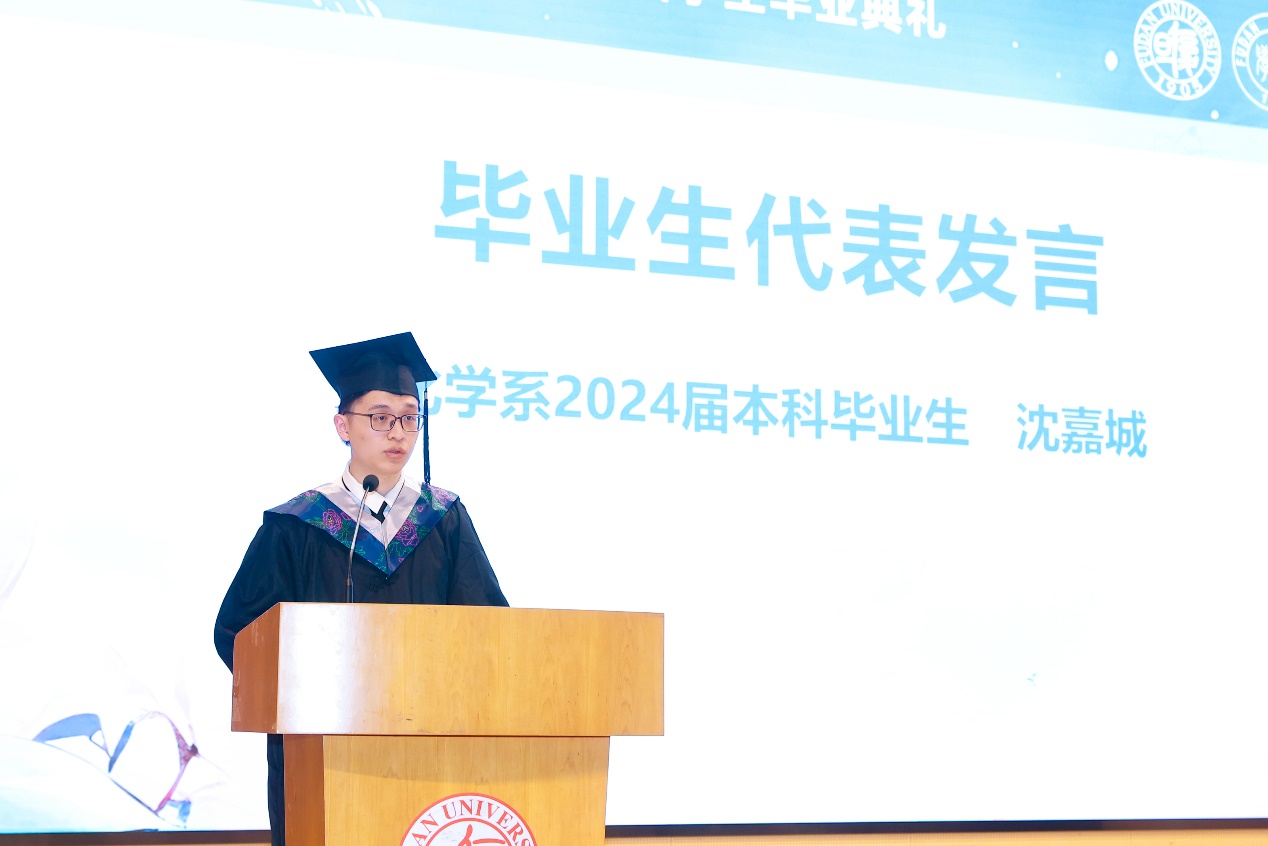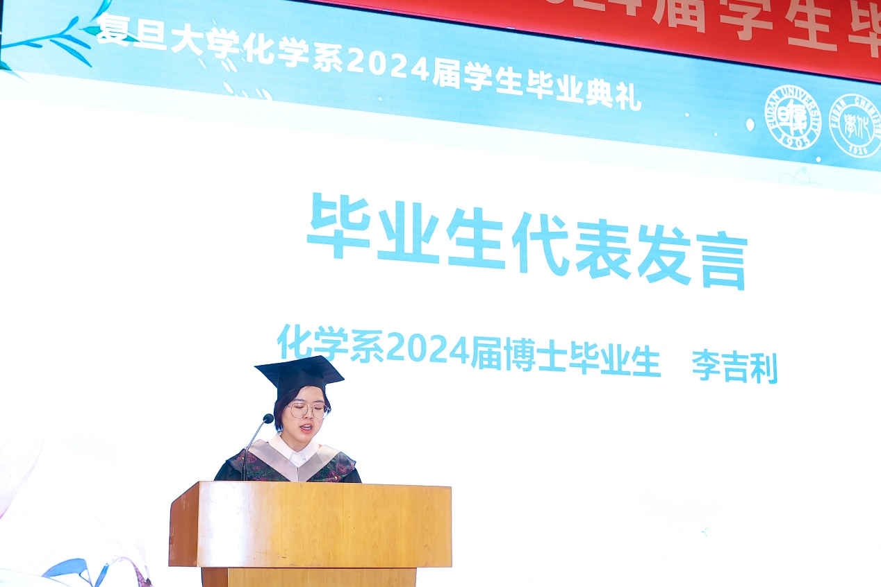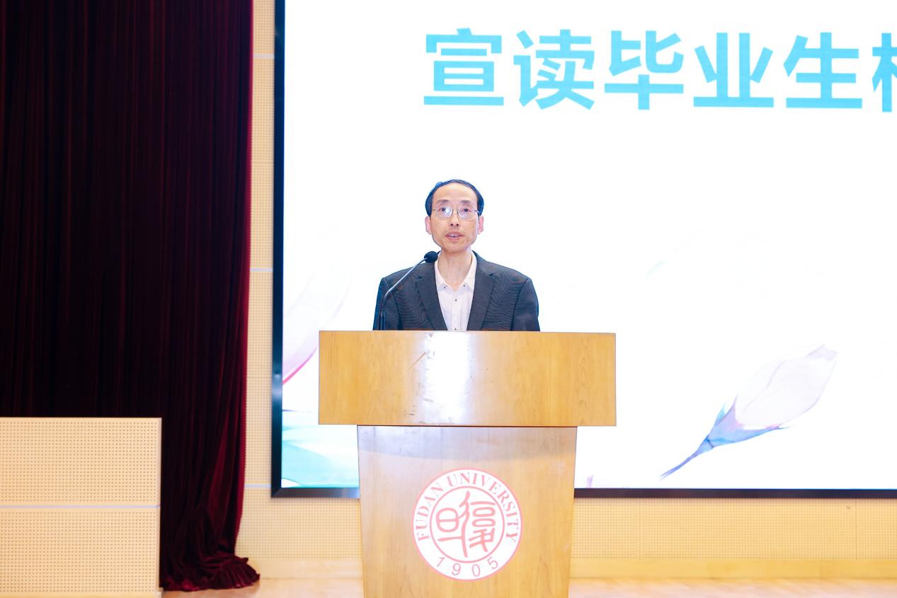 本科毕业生代表沈嘉城同学,硕士毕业生代表靳雪同学,博士毕业生代表李吉利同学先后分享了他们的毕业感言。他们回顾了在复旦校园的求学时光,热情地表达了对母校、导师的感恩之情。毕业是一个新的起点,毕业生们将铭记复旦精神,肩负“博学而笃志,切问而近思”的校训,继续努力奋斗,勇敢探索,为国家和社会做出更多积极贡献。