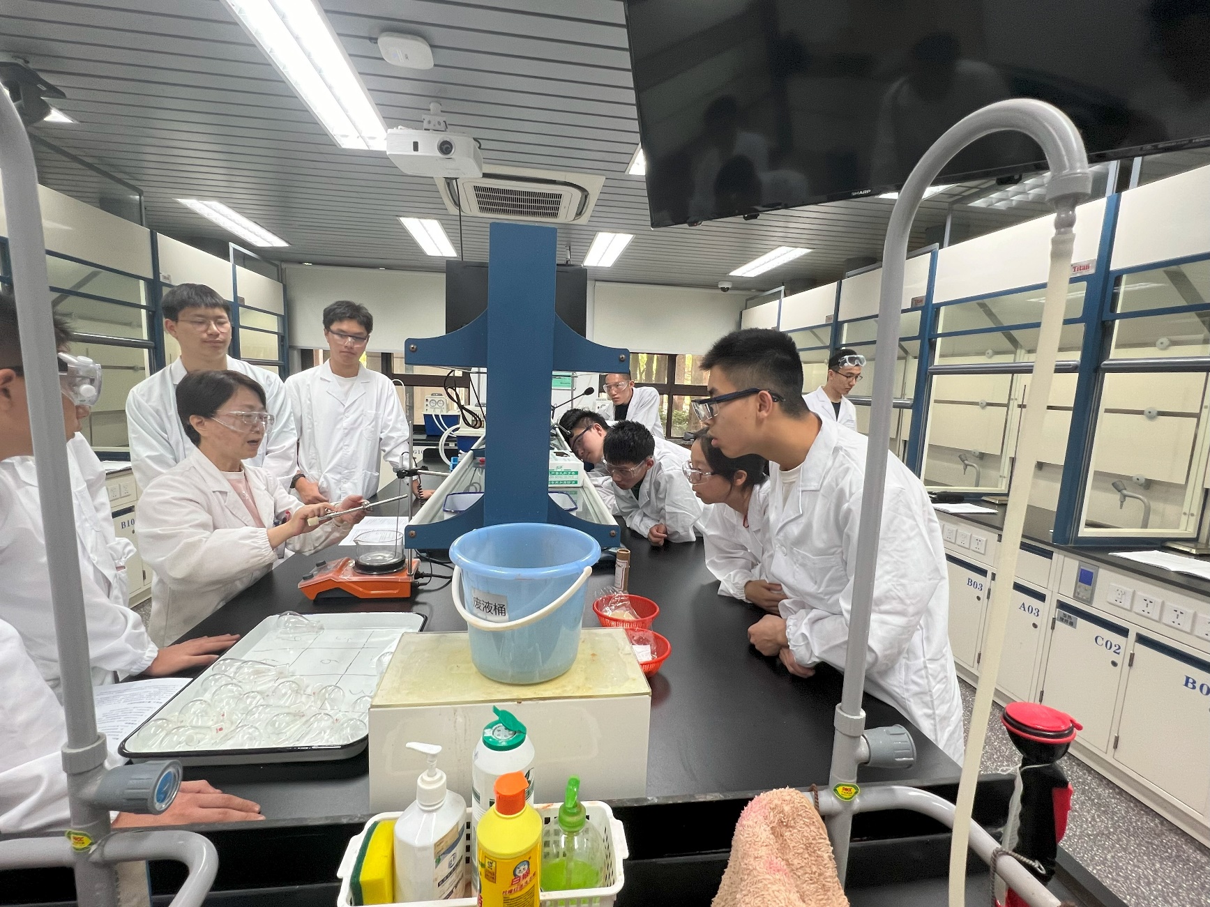 张一凡同学表示,在老师的讲解和实验过程中,他学习到了很多知识,如稀土元素的战略背景、Eu离子能在紫外线下发出红色荧光,都令他印象深刻。“这个实验很有趣”,陈柏奥同学说,“它让我接触到了中学没有的实验,也有一定的计算难度,很有成就感”。