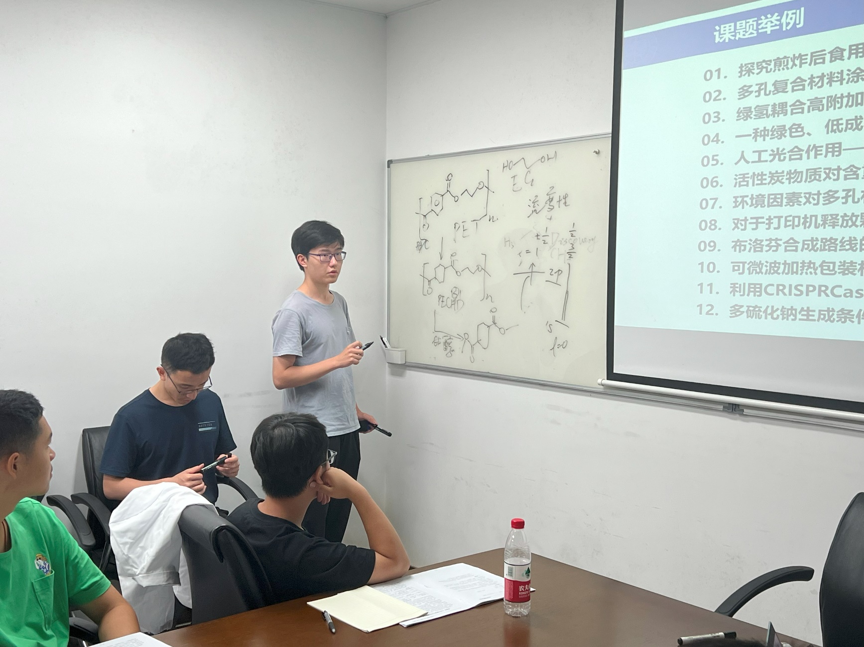 为了增强同学们对化学研究的综合认知、鼓励同学们的科创热情,夏令营安排了科创开题讨论环节,并由唐云教授来主持。唐老师先以高中生科创竞赛评委的视角,与同学们分享了科创项目的选题与研究范式,进而与每位同学一一交流,为同学们所想的科创课题提供了针对性建议。