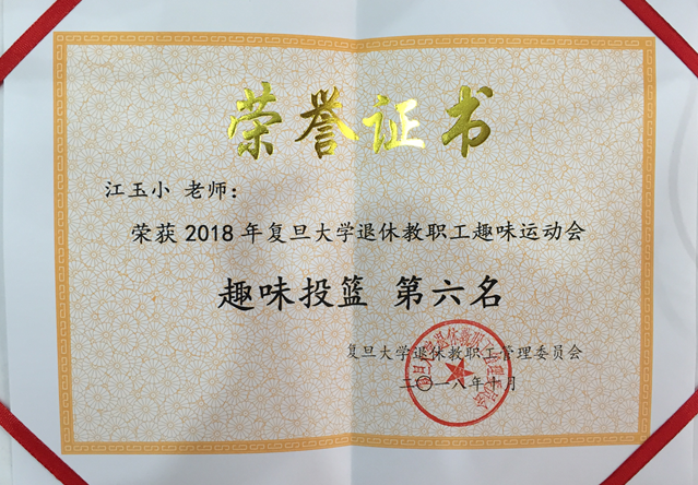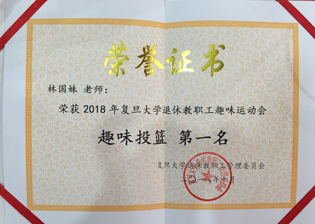 2018年9月25日,h小说 退休教职工积极参加趣味运动会,并荣获”2018年h小说 退休教职工趣味运动会优秀组织奖“。此外,趣味投篮、飞镖荣获团体一等奖;足球射门荣获团体三等奖;林国妹、江玉小荣获趣味投篮个人奖;林国妹、王力平荣获飞镖个人奖。