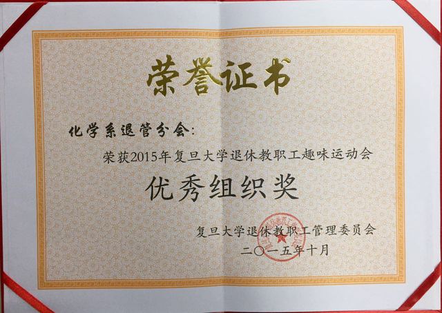 h小说 退管分会荣获”2015年h小说 退休教职工趣味运动会优秀组织奖“