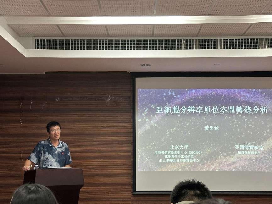 报告中,黄岩谊教授介绍了其团队在微流控、生物成像、单细胞测序与ECC(Error-Correction Code)纠错编码方法等方面的重要工作。目前已有的单细胞全基因组测序技术存在通量低、时间长等问题,基于此,黄岩谊教授团队开发了多种新的测序方法。其中SPRINT-Seq技术结合了滚环扩增、核酸编码以及测序和杂交技术,应用于空间转录组分析。除了推出SPRINT-seq技术外,黄岩谊教授团队还研发了应用范围更广泛的PRISM技术。这项技术能够在无需特殊流体环境的条件下,仅利用传统的荧光显微镜,通过一次性的染色与成像流程,实现对多种RNA分子的原位检测,此外,PRISM技术还能够对组织样本进行三维的RNA原位定位分析。在问答环节,现场师生就细胞样本等问题进行了深入探讨。