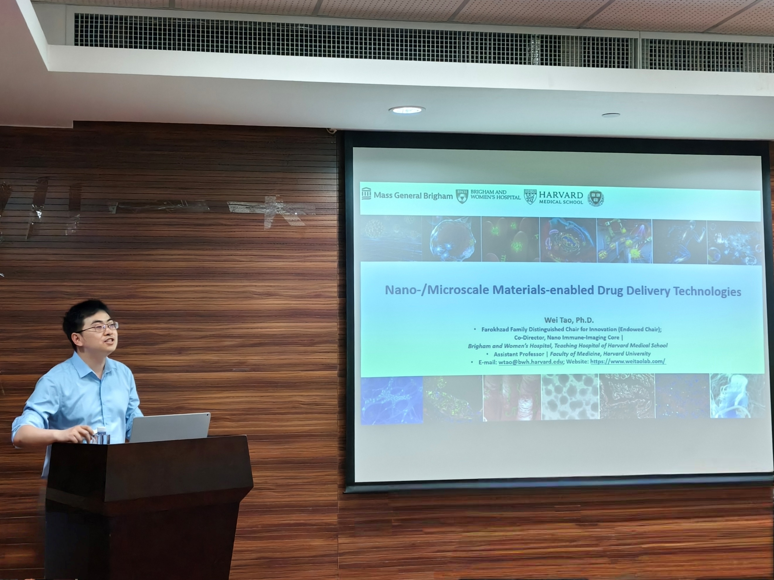 9月20日下午,h小说 “光华化学论坛”在江湾校区化学楼A3030室顺利举行。美国哈佛大学陶伟教授受邀作了题为“Nano-/Microscale Materials-enabled Drug Delivery Technologies”的学术报告。仰大勇教授主持本次报告会,并为陶伟教授颁发了证书。