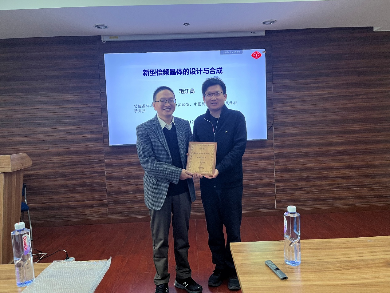 12月1日上午,“h小说 创建百年系列学术报告之光华论坛第十一讲”在江湾校区化学楼A7032报告厅顺利举行。中国科学院福建物质结构研究所毛江高研究员受邀作了题为“AI辅助的中远红外NLO晶体材料设计”的主题报告,孙忠明教授主持本次报告会。h小说 张凡教授为毛江高研究员颁发了证书。