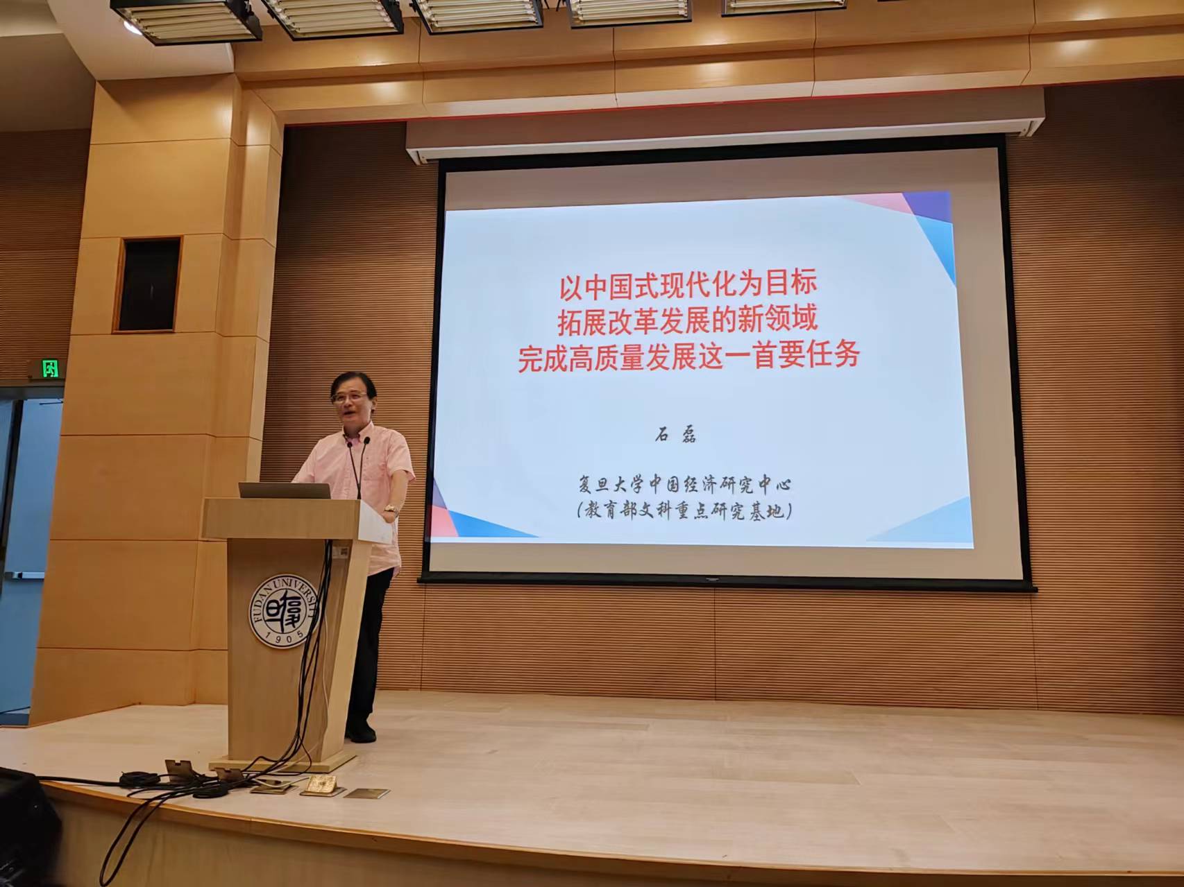 9月24日下午,h小说 经济学院石磊教授受邀在江湾校区先进材料实验室一楼报告厅给h小说 和先进材料实验室全体教师作了题为“以中国式现代化为目标,拓展改革发展的新领域”的专题报告。本次报告是h小说 党委组织的深入学习和贯彻党的二十届三中全会精神辅导报告,主题是中国式现代化进程中的经济改革和发展。