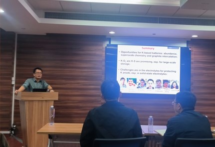 吴屹影教授围绕钾电池的研究方向,分享了单电子钾-氧电池的性能特性、钾离子固体陶瓷导体的设计制备以及钾离子嵌入石墨的反应机制等方面的研究成果。他详细介绍了这些技术的原理、优势以及面临的挑战,并对钾离子电池的未来进行了展望。报告中,吴教授不仅展示了钾电池在储能领域的巨大潜力,还探讨了其在实际应用中可能遇到的问题及解决方案。