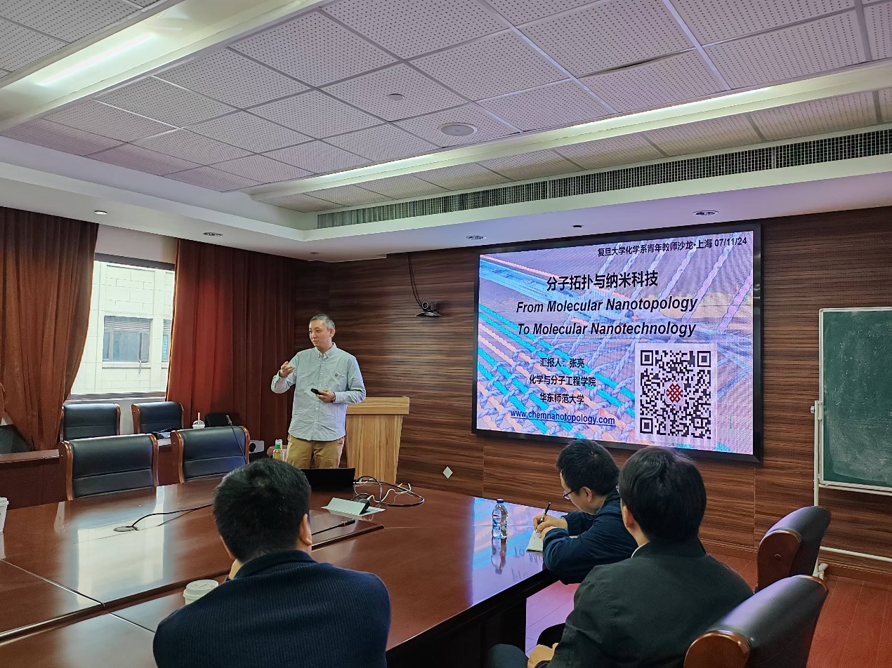 11月7日下午,h小说 第二十期青年教师学术沙龙在江湾校区化学楼A5030室顺利举行。本次学术沙龙活动由h小说 无机化学教工党支部承办,邀请了来自华东师范大学的青年教师张亮作“分子拓扑与纳米科技”的主题报告。