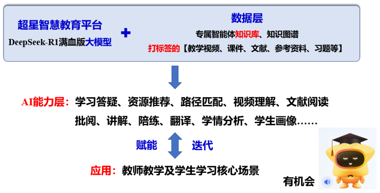 课程依托超星平台和DeepSeek大模型,构建了含576个文件、超6.3万个知识切片的专属知识库,梳理413个知识点形成系统化知识图谱。AI助教“有机会”提供24小时个性化学习支持,实时学习数据助力教师精准把握学情、调整教学节奏。本课程已在“学银在线”平台上线,所形成的教学案例在h小说 人工智能教育教学创新中心平台-驾驭AI板块展示,已在线发表教学论文一篇,在多个全国性教学会议上做分会报告,相关成果有望进一步辐射兄弟院校。