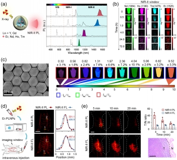 Persistent luminescence is not affected by background autofluorescence, and thus holds the promise of high-contrast bioimaging. However, at present, persistent luminescent materials for in vivo imaging are mainly bulk crystals characterized by a non-uniform size and morphology, inaccessible core–shell structures and short emission wavelengths. Here we report a series of X-ray-activated, lanthanide-doped nanoparticles with an extended emission lifetime in the second near-infrared window (NIR-II, 1,000–1,700 nm). Core–shell engineering enables a tunable NIR-II persistent luminescence, which outperforms NIR-II fluorescence in signal-to-noise ratios and the accuracy of in vivo multiplexed encoding and multilevel encryption, as well as in resolving mouse abdominal vessels, tumours and ureters in deep tissue (~2–4 mm), with up to fourfold higher signal-to-noise ratios and a threefold greater sharpness. These rationally designed nanoparticles also allow the high-contrast multiplexed imaging of viscera and multimodal NIR-II persistent luminescence–magnetic resonance–positron emission tomography imaging of murine tumours.
