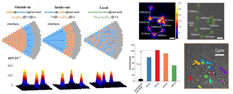 Manipulating topological arrangement is a powerful tool for tuning energy migration in natural photosynthetic proteins and artificial polymers. Here, we report an inorganic optical nanosystem composed of NaErF4 and NaYbF4, in which topological arrangement enhanced upconversion luminescence. Three architectures are designed for considerations pertaining to energy migration and energy transfer within nanoparticles: outside-in, inside-out, and local energy transfer. The outside-in architecture produces the maximum upconversion luminescence, around 6-times brighter than that of the inside-out at the single-particle level. Monte Carlo simulation suggests a topology-dependent energy migration favoring the upconversion luminescence of outside-in structure. The optimized outside-in structure shows more than an order of magnitude enhancement of upconversion brightness compared to the conventional core-shell structure at the single-particle level and is used for long-term single-particle tracking in living cells. Our findings enable rational nanoprobe engineering for single-molecule imaging and also reveal counter-intuitive relationships between upconversion nanoparticle structure and optical properties.