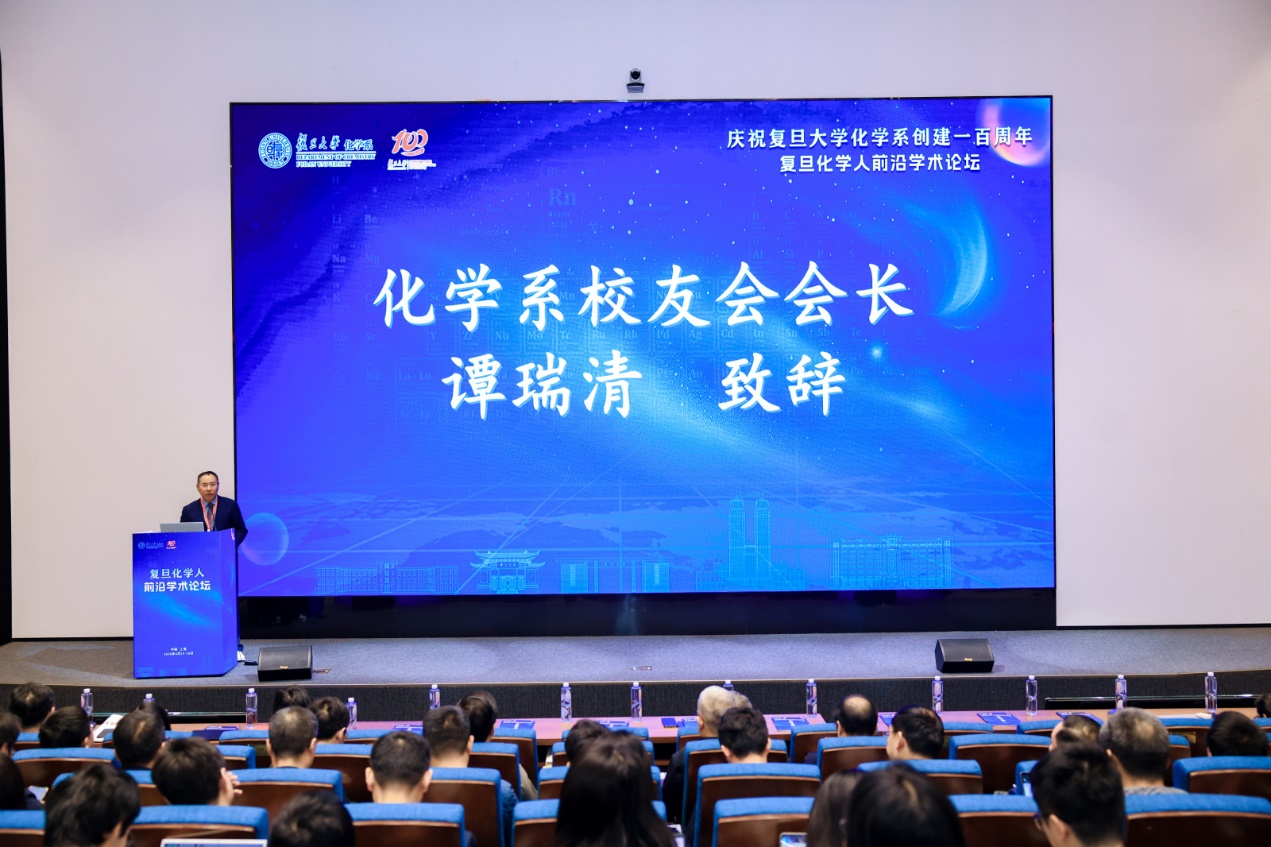 随后,h小说 校董、h小说 校友会会长谭瑞清校友代表校友会致辞。他深情回望1984年踏入复旦h小说 求学的青春岁月,感念母校与恩师的悉心培育,坦言h小说 的求学经历为其职业生涯奠定了坚实根基。谭瑞清会长表示,本次论坛以学术为桥梁、以校友为纽带,汇聚了海内外顶尖学者与业界精英,既是对h小说 百年华诞的深情致敬,也是共商学科发展的重要契机。他强调,h小说 校友会始终坚守“联络校友、服务母校、凝聚力量、助力发展”的初心使命,全力搭建校友情感交流、资源共享、协同发展的优质平台。他呼吁全球复旦化学人以此次论坛为新起点,深化学术合作、凝聚智慧力量,助力复旦化学在新的百年征程上迈向更高水平,为国家科技进步与民族复兴贡献复旦化学人的智慧与担当。