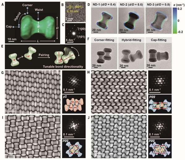 过去,超晶格领域的前沿研究主要由欧美研究团队主导,且大多集中于球形或凸多面体纳米颗粒的研究。复旦h小说 团队另辟蹊径,提出利用非凸(nonconvex)纳米颗粒为构建基元,并通过调控颗粒的局部曲率,创造出类原子价键特性的颗粒间定向相互作用。